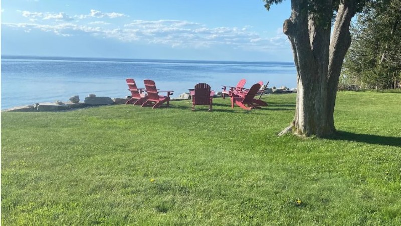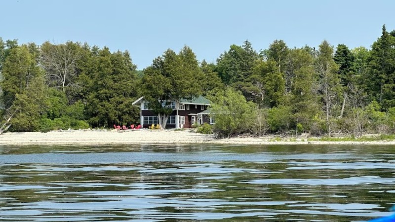 Waterfront! Private, sleeps up to 12 and doggo friendly. We still have some summer weeks available for your perfect getaway. Cherry Lodge sleeps up to 12, but our rates make it an affordable choice for smaller groups or couples. Wouldn't you rather have your own private firepit at the edge of your own private beach with lapping water to watch the sunset or a communal firepit at a condo? Imagine waking up to the sound of lapping waves, birds singing and leaves rustling and then enjoying your first cup of coffee on your waterfront 3 season porch or patio! Grill on your patio and then build a bonfire in your private firepit (we provide all the firewood you want) Cherry Lodge is true waterfront and secluded! Not another cottage or condo in sight with hundreds of feet of waterfront beauty and acres to explore. This large cottage has been in the same family since it was built over a century ago and has been thoughtfully renovated to retain its charm and history. Great for a family or group getaway, Cherry Lodge sits on an expansive, private, waterfront property. Truly waterfront, without another cottage, or condo or anything but woods and water in sight, this spacious, craftsman era home has woods on 3 sides and hundreds of feet of private, walk into the water shoreline. A private fishing pier is a beautiful 3 minute walk down a wooded path, as is a private tennis/pickleball court. Waterfront fire pit (with firewood provided) is perfect for toasting marshmallows while enjoying beautiful sunsets over the bay. A wash stone beach, huge, sunny lawn, patio with grill and gorgeous sunsets give you plenty of options to relax outside.Winter Hours