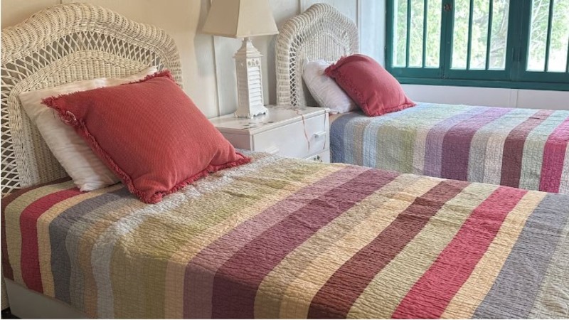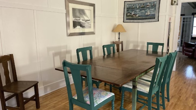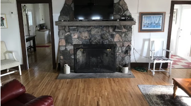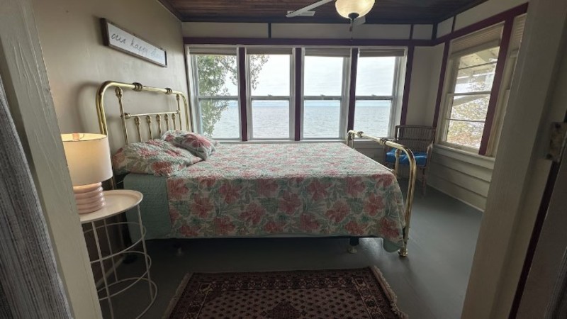 With 6 bedrooms including 2 waterfront, heated and AC'd 'sleeping porch' bedrooms upstairs, 2 bathrooms, a large living room with original stone fireplace, dining room and comfortably furnished 3 season porch overlooking the bay you will have plenty of space to spread out. These are real bedrooms, with beds. No sleeper sofas, inflatables or futons here.