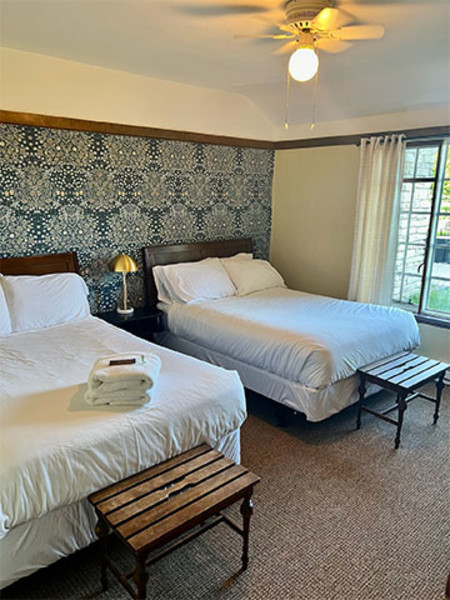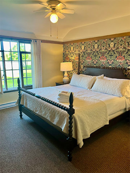 Discover timeless charm at Maxwelton Braes Lodge, a 1929 Prohibition-era hotel in Door County, Wisconsin near the shores of Lake Michigan. Set on a scenic golf course, the boutique property blends vintage elegance with modern comfort—making it a standout for Door County lodging and stunning events. Each lodge room is uniquely styled and range from one-bedroom accommodations to spacious two-bedroom suites—perfect for couples, families, and group getaways. Right onsite, guests can enjoy an 18-hole golf course, two lighted tennis courts, four pickleball courts, and Gatsby’s Grille for indoor and outdoor dining. This property is ideal for those seeking unique wedding venues in Door County. There are various indoor and outdoor event locations. The newly renovated indoor event space features elegant décor, a private bar, and sweeping views. An expansive patio and surrounding grounds lined with old oak trees offer space for breathtaking outdoor events of any size.Rates