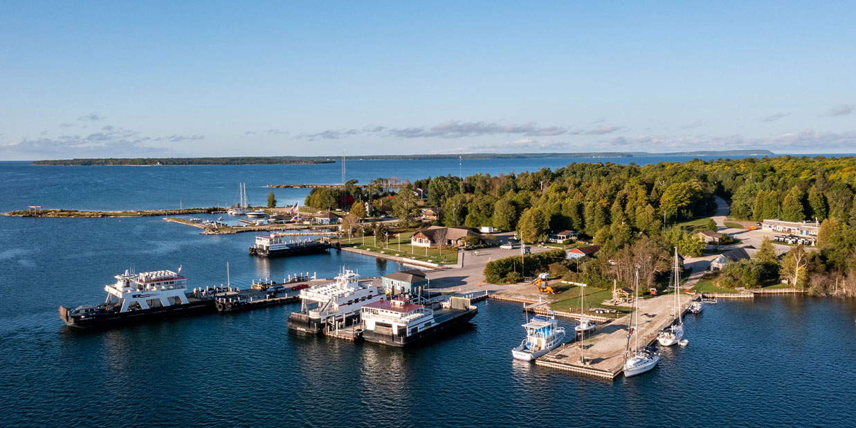 The Washington Island Ferry Line at the Northport Pier boasts a fleet of five ferries, including two built to break the ice for year-round service daily. Open-air seating offers unobstructed views of Plum, Pilot and Detroit Islands, and a heated cabin provides comfort on colder rides. The ferry schedule varies by season and is posted online with the rates for people, autos, motorcycles and bikes. Oversized vehicles are welcome with one-way rates listed online, and leashed pets ride free. Tickets are sold on a first-come, first-served basis, and riders should be in line at least 15 minutes before departure.