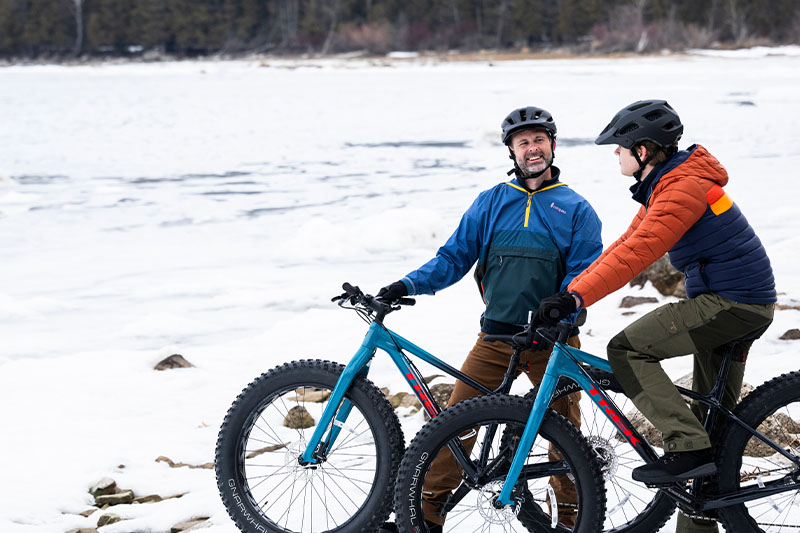 Easily a top outdoor winter sport activity, the oversized tires of a fat tire bike are built to grip textured surfaces. Designed for off-road use, packed, crunchy snow that’s firm but not icy makes every winter ride a smooth adventure and makes fat tire biking the perfect cold-weather sport for this type of snow.