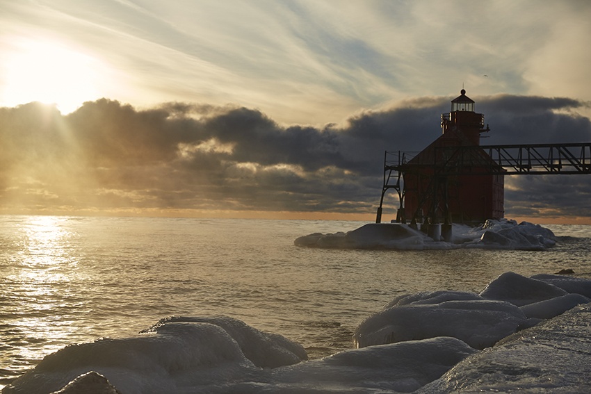 Catch as many wintertime sunrises and sunsets as possible; the winter light in Door County is famously exquisite.