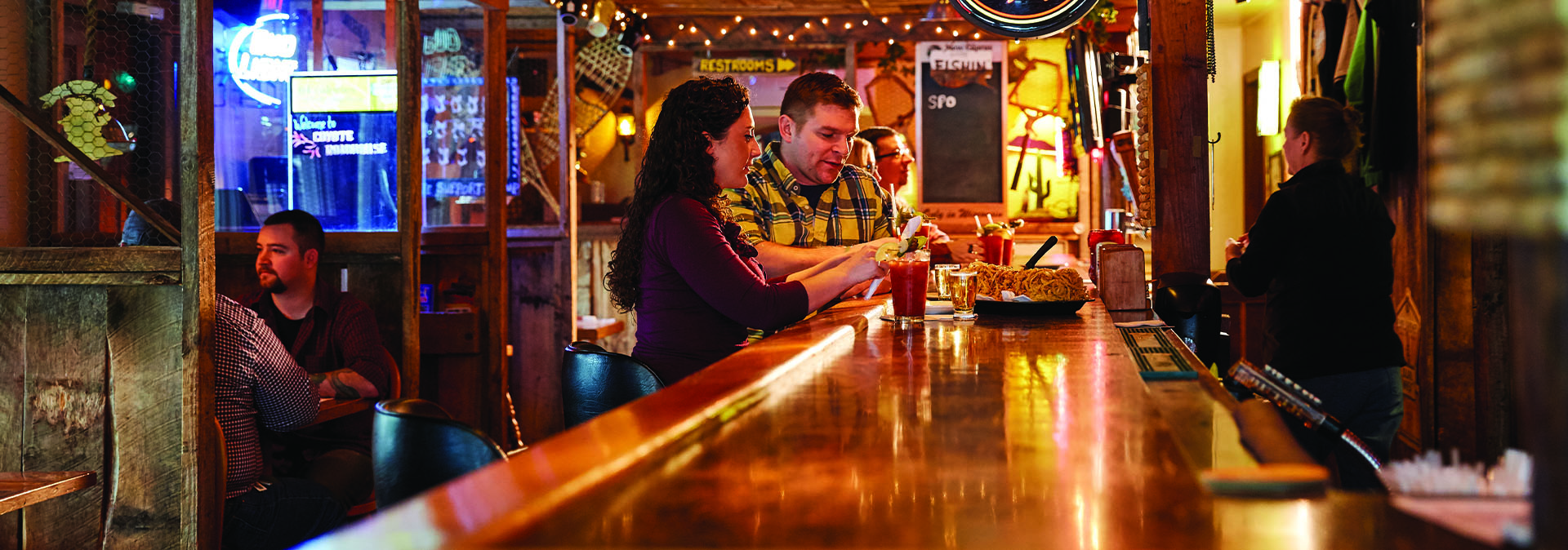 If casual is your mood, make your way to Husby’s Food and Spirits, the original sports bar of Door County. Open every day, all winter long, it’s the perfect way to welcome in the weekend, surrounded by flat screens, pool and bar games, and delicious nightly specials, including the Friday fish fry. Everyone is welcome at Husby’s, which is wheelchair accessible.