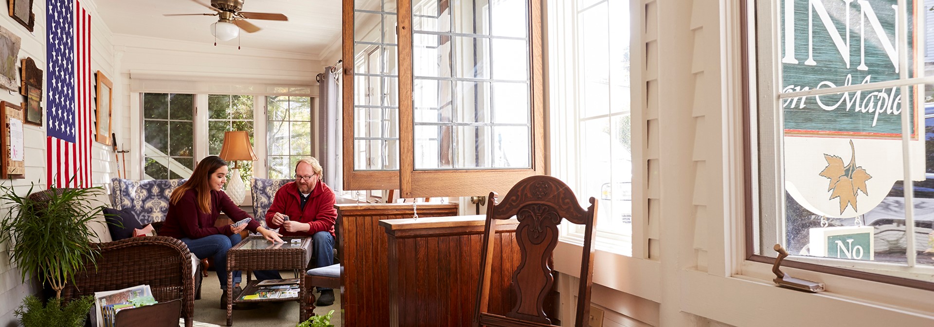 The house has six guest rooms each with their own bath. The entire house is filled with rare antiques that make this inn a very special place to stay. The lodging is adults only and includes daily breakfast from the kitchen during your stay.