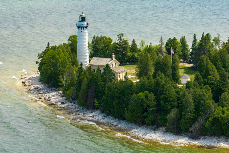 A visit to Door County wouldn’t be complete without seeing one of its most iconic lighthouses. Located just northeast of Baileys Harbor, Cana Island Lighthouse is accessible via a causeway that’s walkable or rideable by a seasonal tractor wagon when water levels are high. Once on the island, you can climb the spiral staircase to the top of the 89-foot tower for panoramic views of Lake Michigan, explore the restored keeper’s quarters, and learn about Door County’s maritime history. The lighthouse is operated by the Door County Maritime Museum and is typically open seasonally from May through October.