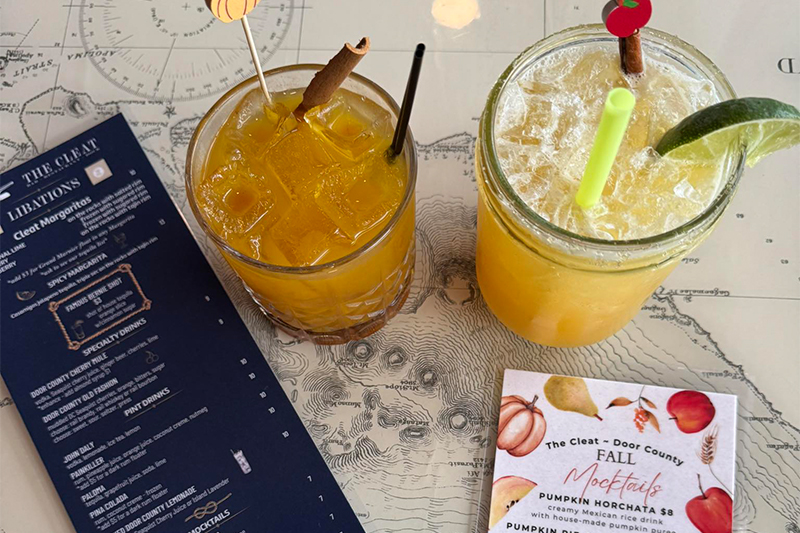 For casual waterfront dining, it’s pretty hard to beat the views and festive flavors at The Cleat Restaurant in Sister Bay. This includes seasonal mocktails, such as the fall lineup with creamy pumpkin horchata, pumpkin pie smash mocktail, the non-alcoholic Apple Margarita with a twist of maple syrup or the DC cherry/apple margarita, or the Apple Cider Float.