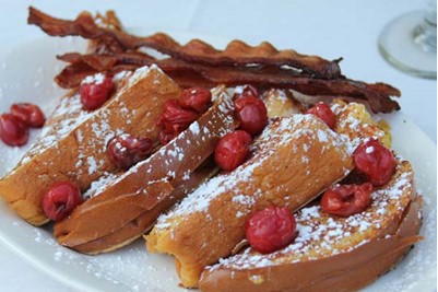 A customer favorite at the White Gull Inn in Fish Creek is the Door County Cherry Stuffed French Toast. Two slices of egg bread are stuffed with cream cheese and local cherries and then topped with maple syrup for a deliciously decadent breakfast.