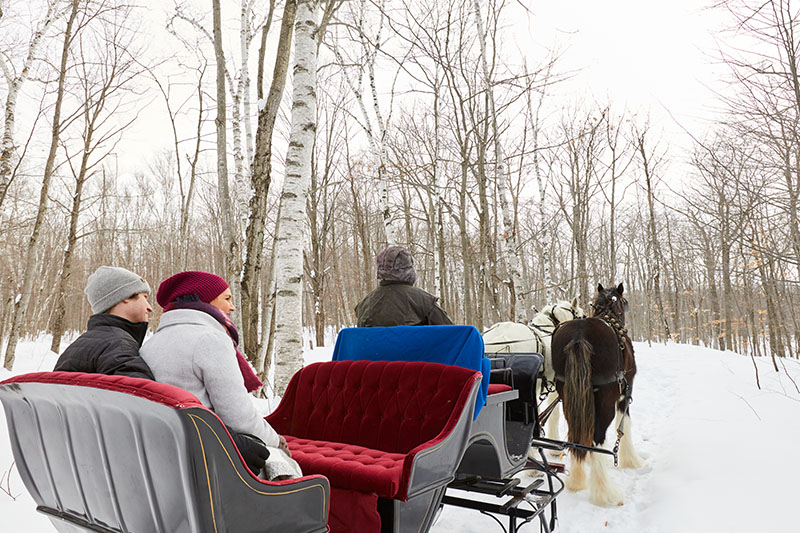 Step back in time and add a touch of classic romance to your Valentine’s Day with a scenic ride from Mayberry’s Carriages, a local favorite for over 30 years. Choose a cozy carriage ride to experience the peace and tranquility of yesteryear, or bundle up for a magical sleigh ride through Door County’s snow-covered wonderland. After your journey, warm up at a charming café with a cup of hot cocoa, coffee, or your favorite seasonal drink to top off your Valentine’s Day getaway.